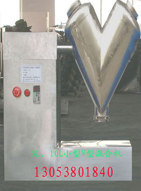 将粉末或粒状物料加到V型容器中,随着容器的不断旋转,物料在容器中进行复杂的多种运动,达到均匀的混合。